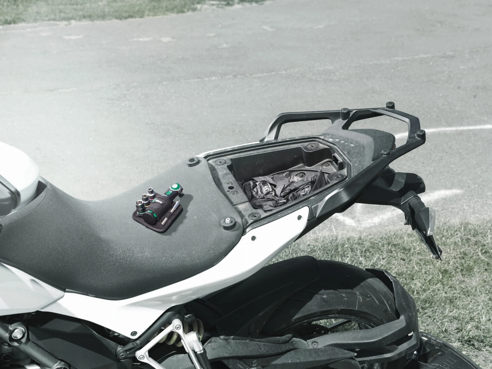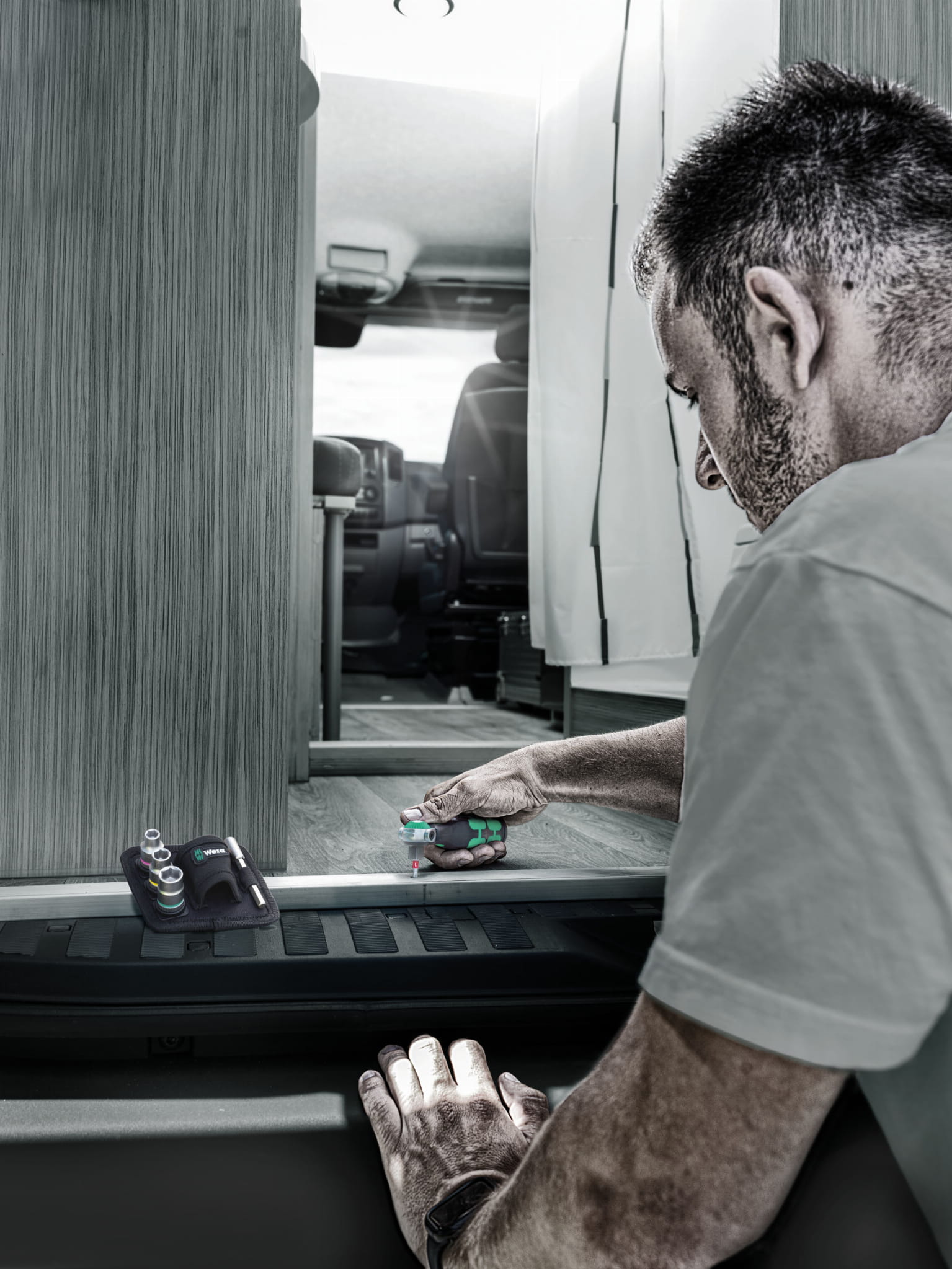 - zestaw z grzechotką, bitami, kluczami nasadowymi - potrzebne narzędzia w zasięgu ręki