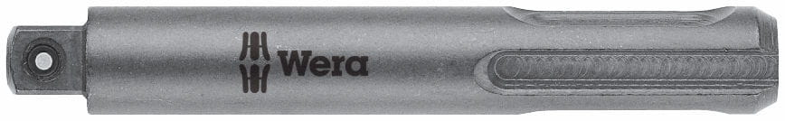 Profesjonalny adaptor (adapter) firmy Wera do kluczy nasadowych (nasadek) z gniazdem (zabierakiem) czworokątnym. Adaptor umożliwia współpracę kluczy nasadowych z młotko-wiertarkami (praca bez udaru!) z chwytetm SDS Plus. Posiada trzpieniem zabezpieczającym klucz nasadowy przed spadaniem (zdjęcie klucza wymaga wciśnięcia trzpienia przy użyciu narzędzia). Do kluczy nasadowych z zabierakiem 1/4".