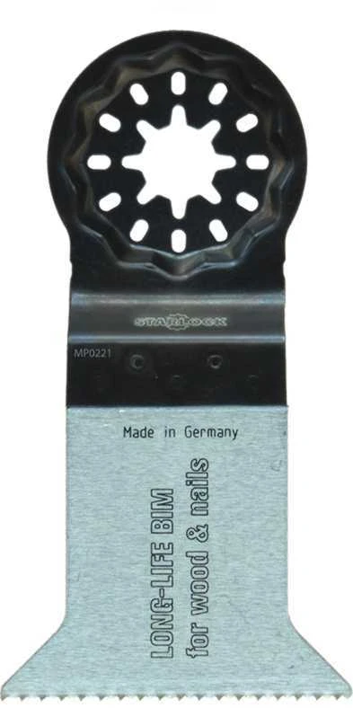 Wykonany z bimetalu brzeszczot jest najtrwalszy i odporny na zniszczenia, a także wysoką temperaturę powstającą w czasie pracy. Doskonale sprawdza się w cięciu drewna nawet twardego liściastego, sklejki, płyt wiórowych, laminatów, drewna z gwoździami i zszywkami, plastiku czy też płyt kartonowo-gipsowych. Połączenie brzeszczotu z narzędziem oscylacyjnym wypukłą częścią zapobiega powstawaniu luzów co może wystąpić w przypadku niektórych adapterów. Dzięki systemowi STARLOCK przenoszone jest 100% siły z elektronarzędzia na brzeszczot co pozwala na maksymalnie szybką i efektywną pracę. Brzeszczot montuje się bardzo łatwo i sprawnie bez potrzeby przytrzymania ręką i dodatkowych narzędzi.