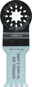Faliste, uniwersalne uzębienie brzeszczotu STARLOCK umożliwia cięcie takich materiałów jak blacha o grubości do 2 mm, aluminium, metali nieżelaznych, drewna, płyt gipsowo-kartonowych i gipsu. Wykonany z bimetalu sprawia, że brzeszczot jest trwały i odporny na uszkodzenia, ponieważ odbiera temperaturę, która powstaje podczas cięcia. Uniwersalne mocowanie STARLOCK zapobiega powstawaniu luzów dzięki czemu przenosi 100% siły z elektronarzędzia na brzeszczot. Prosty i szybki montaż brzeszczotu bez dotykania ostrza i bez użycia narzędzi pozwala na nieprzerwaną pracę.