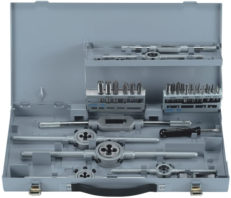 - zestaw profesjonalnych gwintowników i narzynek oraz uchwytów firmy Alpen