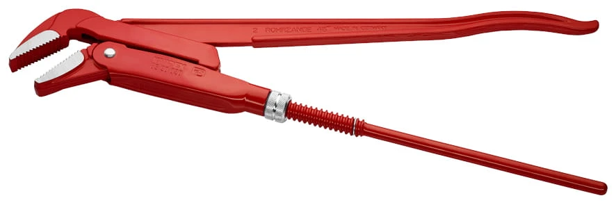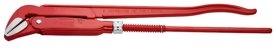Profesjonalny klucz nastawny (tzw. szwedzki) firmy Knipex do rur, złączy, nakrętek, drążków kierowniczych itp. Szczęki zagięte pod kątem 45°. Szczęki z zębami ustawionymi w przeciwnych kierunkach. Zęby dodatkowo hartowane indukcyjnie. Rękojeść górna w kształcie podwójnego profilu T. Nakrętka regulacyjna zabezpieczona przed zgubieniem. Klucz wykonany ze stali elektrycznej chromowo-wanadowej, kutej, hartowanej olejowo. Rękojeści malowane proszkowo, szczęki jasne szlifowane. Klucz nastawny "szwecki" przydatny głównie do prac przy instalacjach wod-kan-co.