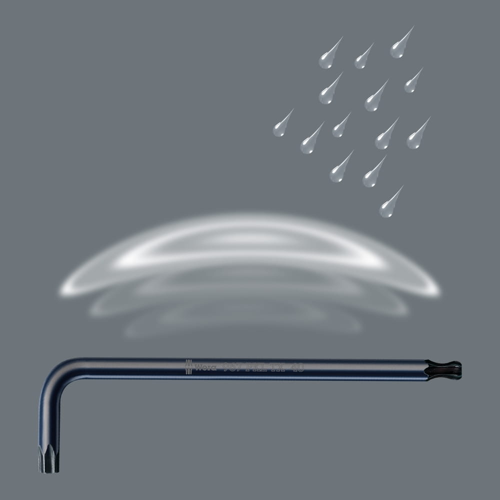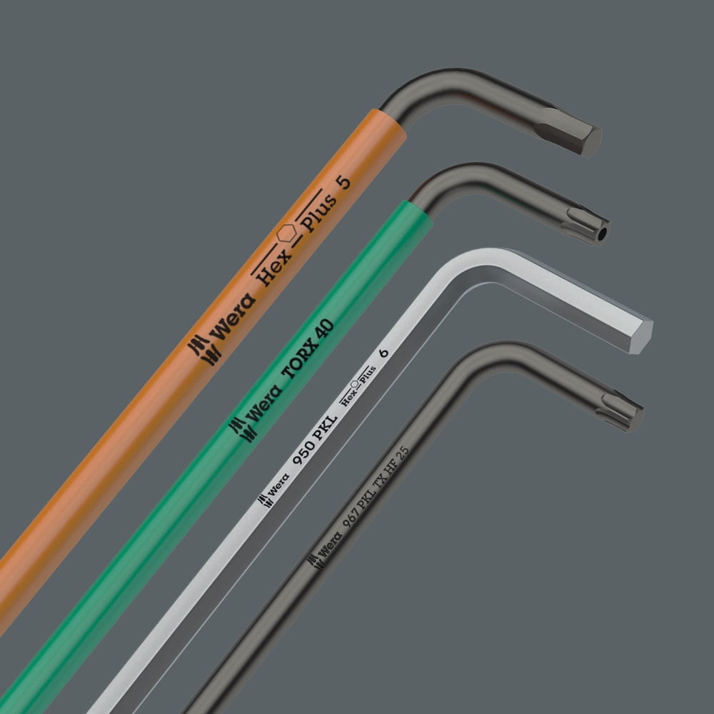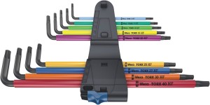 Zestaw wysokiej jakości kluczy trzpieniowych (tzw. imbusowe, ampulowe)do śrub i wkrętów z gniazdem TORX® z funkcją przytrzymywania. Siła przytrzymująca, jest wynikiem docisku końcówki narzędzia do gniazda śruby lub wkrętu, umożliwia pewne ich przytrzymanie na narzędziu. Z bardzo długim ramieniem. Klucze trzpieniowe z gniazdem TORX® HF bardzo dobrze sprawdzają się podczas pracy w montażu i demontażu w wąskich przestrzeniach (np.komora silnika) gdzie nie ma możliwości przytrzymywania klucza ręką na trzpieniu wkrętaka. Często zdarza się że śruba spadnie, a odnalezienie jej jest trudne co stwarza zagrożenie. Klucze trzpieniowe z kolorową nakładką z tworzywa sztucznego wykonaną z okrągłych profili zapewniającą wygodny uchwyt dla dłoni. Nakładka umożliwia wygodną i bezpieczną pracę także przy niskich temperaturach. System wyszukiwania narzędzi "Take it easy" z oznaczeniem kolorystycznym kluczy według rozmiaru. Klucze trzpieniowe poddane procesowi obróbki powierzchni Black Laser odznaczają się doskonałą ochroną powierzchni oraz wysoką trwałością. W praktycznym uchwycie z odpornego na zużycie materiału gwarantującym pewne mocowanie kluczy i jednocześnie łatwe ich wyjmowanie. Klucze trzpieniowe do stosowania np. w urządzeniach, maszynach, meblach, samochodach, rowerach itp