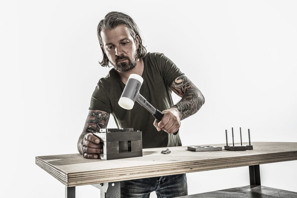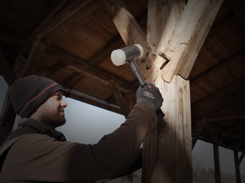 Młotek bezodrzutowy z dwustronnym obuchem wyposażony w wymienne końcówki z tworzywa. Rurowa główka młotka bezodrzutowego wypełniona jest stalowym śrutem, co powoduje, że energia śrutu jest przenoszona z niewielkim opóźnieniem w momencie uderzenia. Dzięki temu zmniejsza się odbicie, co pozwala na bezpieczniejszą pracę, mniejsze obciążenie stawów i lepsze tłumienie hałasu w porównaniu ze zwykłymi młotkami stalowymi. Wymienne wkładki z ekstrudowanego, jednorodnego materiału oferują wyjątkowe właściwości udarowe, łącząc maksymalną wytrzymałość z trwałością. Są bardziej odporne na zużycie i nigdy nie odpryskują, nawet w niskich temperaturach. Młotek bezodrzutowy SUPERCRAFT posiada odporną na złamanie stalową rurkę oraz ergonomiczny, antypoślizgowy gumowy uchwyt. Wszystkie połączenia są spawane przez robota, co zapewnia najwyższą jakość i szczelność. Spawane połączenie między płytą uderzeniową a główką młotka zapobiega wydostawaniu się stalowego śrutu, nawet przy maksymalnym obciążeniu. Odporna na ścieranie powłoka proszkowa zapobiega korozji. Młotek bezodrzutowy SUPERCRAFT jest idealny do budowy maszyn, montażu i napraw w warsztatach samochodowych.