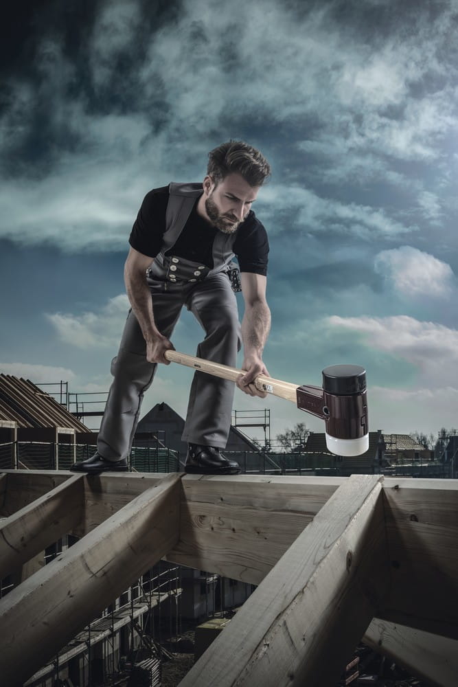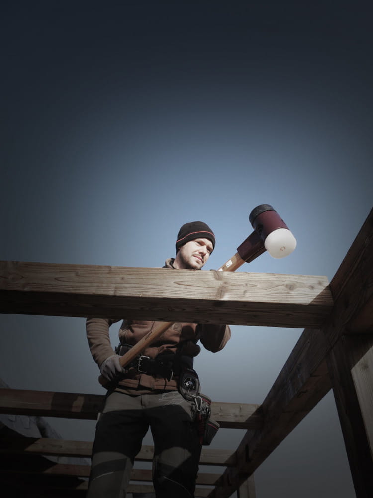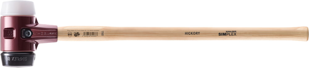 Młotek brukarski SIMPLEX z dwoma różnymi końcówkami, końcówka biała z super plastiku, jest nieodzownym towarzyszem, w wielu zastosowaniach. Jest to średnio twardy plastikowy wkład wykonany z ekstrudowanego i niezwykle jednorodnego materiału. W porównaniu do wkładek z tworzywa sztucznego formowanych wtryskowo jest więc znacznie bardziej odporny na zużycie i trwalszy. Super plastyczna końcówka zapewnia większą siłę uderzenia niż wkładka gumowa. Końcówka czarna gumowa, jest niezwykle odporna na zużycie, amortyzująca uderzenia i bezwonna, średnio twarda, charakteryzuje się znacznie dłuższą żywotnością niż tradycyjny młotek gumowy. Wykonana z żeliwa obudowa posiada zintegrowaną osłonę rękojeści, która zapewnia wysoki poziom odporności na złamanie. Młotek brukarski SIMPLEX posiada wyjątkowo trwały trzonek wykonany z drewna hikorowego o długich włóknach, jest lakierowany i ma ergonomiczny kształt. Wszystkie części młotka brukarskiego SIMPLEX są wymienne i można je doposażyć. Młotek jest wykorzystywany do prac ciesielskich oraz prac brukarskich.