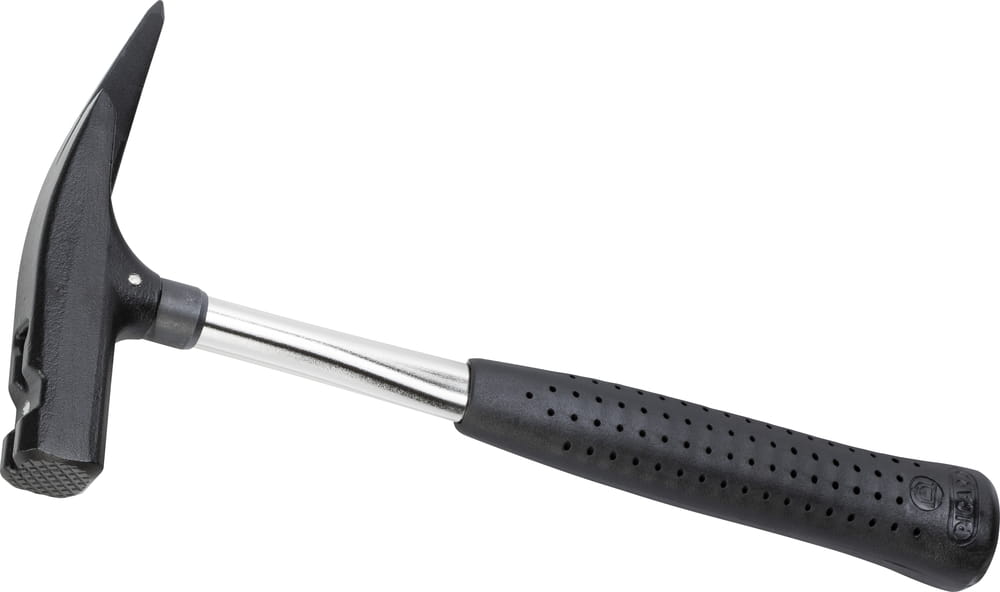 Profesjonalny młotek z certyfikatem TÜV dla dekarzy i cieśli - idealny do wszelkich prac przy wywiązywaniu więźby i kładzeniu dachów. Wykonany ze specjalnej stali Picard z dodatkami, co przewyższa normę DIN. Głowica malowana proszkowo na czarno, odporna na korozję. Młotek ciesielsko-dekarski z kłem i szczeliną do wyciągania gwoździ sprawia, że młotek zyskuje dodatkowe funkcje. Uchwyt z magnesem do podtrzymywania gwoździa w początkowej fazie wbijania zapobiega upadaniu gwoździ. Trzonek młotka wykonany ze stalowej rury z jednokomponentową rękojeścią z tworzywa, obuch hartowany.