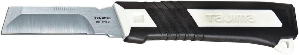 Uniwersalny nóż Tajima do obróbki kabli i przewodów np. zdejmowania izolacji. Ostrze z funkcją dłuta, wykonane z jednego kawałka stali nierdzewnej. Noża można również użyć do gratowania obrobionego materiału do cięcia, zdzierania, szorstkowania, skrobania i dłutowania. Nóż monterski do kabli może być używany z młotkiem jako podbijak z funkcją podobną do dłut. Ergonomiczna rękojeść z tworzywa zakończona wymienną wkładką do pobijania. Nóż monterski do kabli dostarczany jest z osłoną ostrza z tworzywa. Nóż doskonale sprawdzi się podczas prac przy montażu instalacji elektrycznych, a także innych zastosowań.