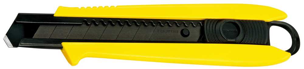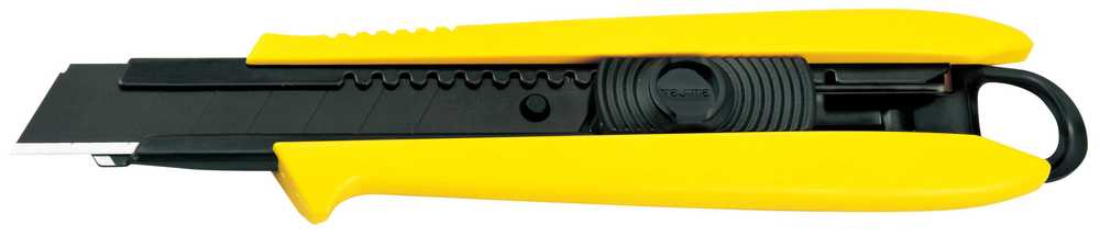 Wysokiej klasy profesjonalny nóż z łamanym ostrzem 18 mm firmy Tajima, z automatyczną blokadą ostrza, do cięcia papieru, folii i innych cienkich materiałów. Dodatkowe krótkie ostrze na końcu szyny prowadzącej służy jako wkrętak płaski lub ostrze do trasowania. Nóż może również obsługiwać inne typowe zadania w tym podnoszenie pokryw puszek i otwieranie pudełek bez konieczności wysuwania ostrza noża. Ergonomiczna, rękojeść z tworzywa. Nóż z bardzo ostrym ostrzem łamanymi 18 mm Razar Black Blade®. Trwałość i ostrość ostrza jest niezwykła ze względu na jakość stali, z której są wykonane, a technologie hartowania i ostrzenia są najnowsze. Nóż z łamanym ostrzem doskonale sprawdzi się do zastosowania w pracach budowlanych, dekoratorskich, remontowych, modelarskich, warsztatowych itp.
