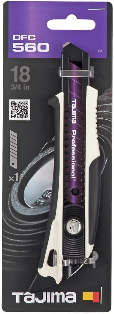 Wysokiej klasy profesjonalny nóż z ostrzem łamanym 18 mm firmy Tajima. Przeznaczony do cięcia papieru, folii i innych cienkich materiałów. Trwałość i ostrość ostrzy jest wybitna ze względu na jakość stali, z której są wykonane a technologie hartowania i ostrzenia są najnowsze. Dodatkowe krótkie ostrze na końcu szyny prowadzącej służy jako wkrętak płaski lub ostrze do trasowania. Stalowa płetwa umieszczona na końcu rękojeści umożliwia np. otwarcie puszek z farbami lub kartonów. Samoczynnie chowający się - system Tajimy jest zaprojektowany tak, aby zapewnić wygodę przyczepność i optymalną wydajność. Ogranicznik w dolnej części rękojeści. Nóż z łamanym ostrzem przeznaczony jest do różnego rodzaju prac budowlanych, dekoratorskich, remontowych, modelarskich, warsztatowych itp. Dostarczany z 1 bardzo ultra twardym i ostrym ostrzem łamanym 18 mm Razar Black Blade®.