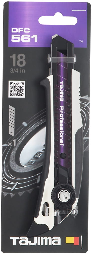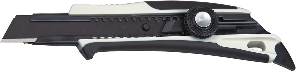 Wysokiej klasy profesjonalny nóż z ostrzem łamanym 18 mm firmy Tajima. Doskonały do cięcia papieru, folii i innych cienkich materiałów. Ostrza wykonane z wysokogatunkowej stali z precyzyjnie naostrzoną krawędzią tnącą. Trwałość ostrzy jest wybitna ze względu na jakość stali, z której są wykonane i najnowocześniejsze technologie hartowania i ostrzenia. Z blokadą w postaci tradycyjnego pokrętła. Dodatkowe krótkie ostrze na końcu szyny prowadzącej służy jako wkrętak płaski lub ostrze do trasowania. Stalowa płetwa umieszczona na końcu rękojeści umożliwia np. otwarcie puszek z farbami lub kartonów. Ogranicznik w dolnej części rękojeści. Nóż z ostrzem łamanym przeznaczony do różnego rodzaju prac budowlanych, dekoratorskich, remontowych, modelarskich, warsztatowych itp. Dostarczane z 1 bardzo ostrym ostrzem łamanym 18 mm Razar Black Blade®.
