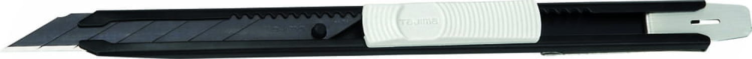 Profesjonalny nóż z łamanym ostrzem 9 mm firmy Tajima. Ostrze wykonane z wysokogatunkowej stali z precyzyjnie ostrzoną tradycyjnymi japońskimi metodami obróbki stali krawędzią tnącą. Idealny do cięcia m.in. papieru, tektury, tworzywa, skóry. Prowadnica noża zakończona dodatkowym stałym ostrzem, którego można użyć jako wkrętaka płaskiego, do podważania lub znakowania na kartonie. W tylnej części noża uchwyt do zapięcia na pasku lub w kieszeni koszuli. Nóż z łamanym ostrzem przeznaczony jest do precyzyjnego docinania elementów, prac sztukatorskich, artystycznych, modelarskich itp. Doskonale nadaje się do cięcia cienkich materiałów.