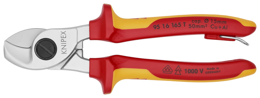 Nożyce do cięcia kabli i przewodów z uchwytem do linki zabezpieczającej Knipex 95 16 165 T