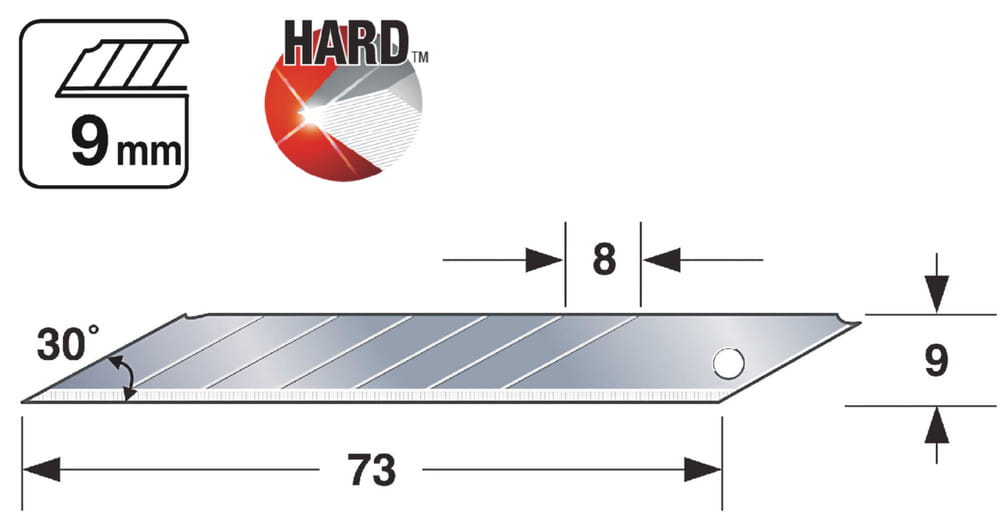 Profesjonalne ostrze segmentowe łamane 9 mm firmy Tajima do różnych modeli noży. Klingi tnące wykonane są z wysokogatunkowej stali z precyzyjnie naostrzoną krawędzią tnącą. Trwałość i ostrość ostrzy jest wybitna ze względu na jakość stali, z której są wykonane, a technologia hartowania i ostrzenia jest najnowocześniejsza. Ostrze segmentowe 9mm wykonane z wysokogatunkowej stali z precyzyjnie ostrzoną tradycyjnymi japońskimi metodami obróbki stali krawędzią tnącą. Przeznaczony do precyzyjnego docinania elementów, prac sztukatorskich, artystycznych, modelarskich itp. W bezpiecznym magazynku z tworzywa.
