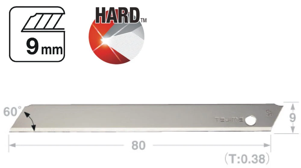 Profesjonalne ostrza stałe (niełamane) 9 mm firmy Tajima do różnych modeli noży. Ostrza do noży przeznaczone są do cięcia takich materiałów jak papieru, kartonu, tworzywa, materiału, a nawet skóry. Precyzyjnie ostrzona krawędź pozwala na czyste dokładne cięcie. Tego rodzaju ostrza idealnie sprawdzą się do cięcia małych i delikatnych elementów, wymagających precyzji i dokłądności. Ostrza do noży wykonane są z wysokiej jakości stali, dzięki czemu jest odporniejsze na złamania. Ostrza mieszczą się w bezpiecznym magazynku wykonany z tworzywa. Cena za opakowanie 10 szt.