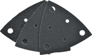 Uniwersalny arkusz papieru ściernego do płyty szlifierskiej, przeznaczony do szlifowania wstępnego różnych materiałów. Trójkątny kształt pozwala na dotarcie w trudno dostępne miejsca. Do wyboru dostępne są różne granulacje papieru ściernego 60, 120 i 180. Wysokowydajny papier mocowany jest do płyty szlifierskiej urządzenia za pomocą rzepu.