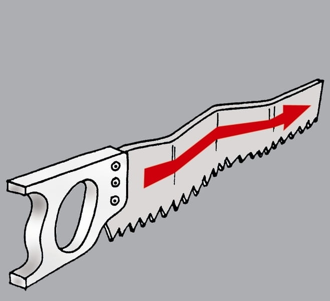 - cięcie poprzez pociąganie piły do siebie zapobiega falowaniu i deformacji brzeszczotu