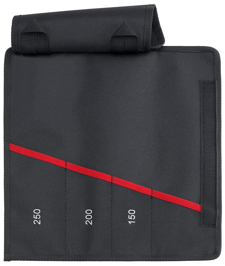 Etui zwijane wykonane z mocnej tkaniny poliestrowej, odpornej na przetarcia i warunki codziennego użytkowania, etui KNIPEX powstało z myślą o pracy w terenie, na warsztacie, w aucie serwisowym i wszędzie tam, gdzie liczy się funkcjonalność oraz trwałość.