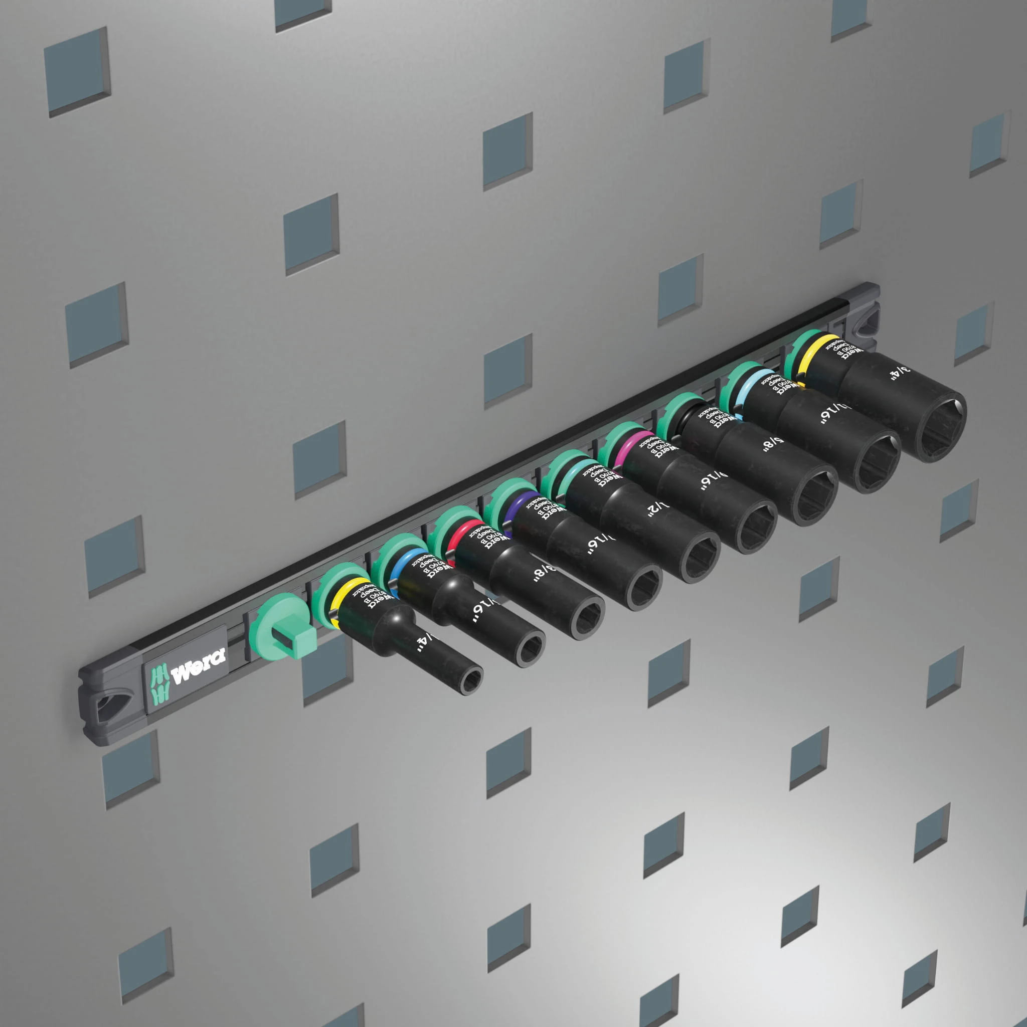 Wygoda przechowywania idzie w parze z innowacją. Dołączona do zestawu listwa magnetyczna pozwala na pewne, krótkotrwałe mocowanie narzędzi do metalowych powierzchni, takich jak szafki narzędziowe czy wózki warsztatowe. Za bezpieczeństwo samych nasadek odpowiada mechanizm „Twist to unlock” – gwarantuje on stabilne zablokowanie kluczy na listwie podczas transportu, umożliwiając jednocześnie ich łatwe odblokowanie i wyjęcie za pomocą jednego, krótkiego obrotu ręką.