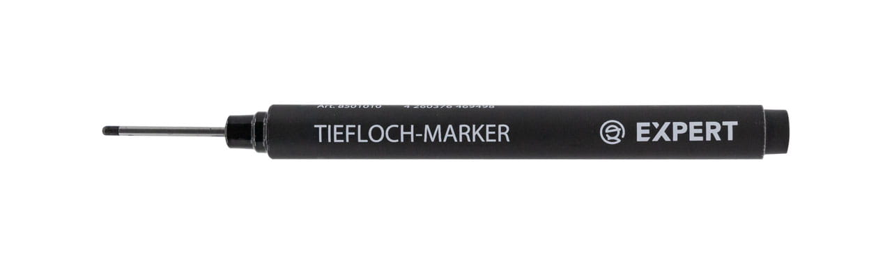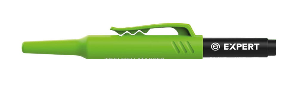 Znakowanie w wywierconym otworze bywa często kłopotliwe. W tym miejscu przychodzą nam z pomocą markery przeznaczone do tego typu znakowania. Specjalnie wydłużona i zwężona końcówka dotrze w trudno dostępne miejsca i precyzyjnie zaznaczy interesujące nas miejsce. Permanentny atrament w pisaku do głębokich otworów EXPERT pozostawia trwałe i wyraźne ślady. Szerokość linii jaką znaczy pisak do głębokich otworów wynosi 0,7-1 mm.
