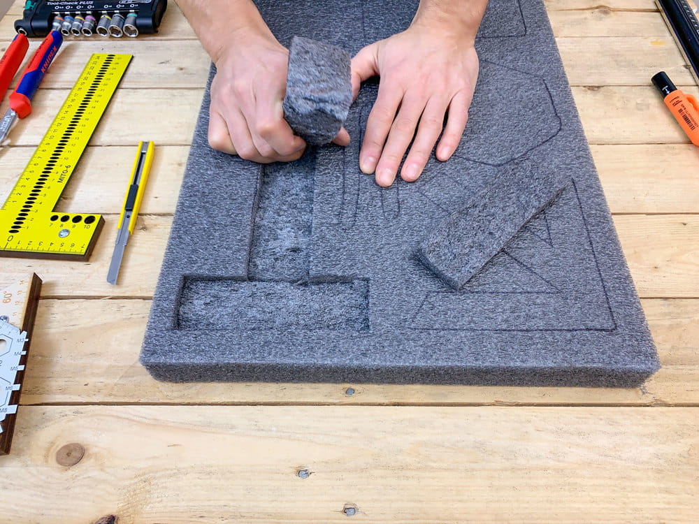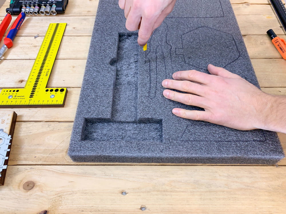 - zachowanie porządku w szufladzie - pianka wypełnia całą szufladę, dedykowane pod konkretne narzędzia i przedmioty miejsca