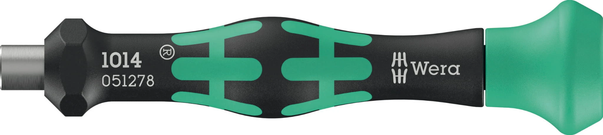 Wera dba o porządek na Twoim stanowisku pracy, dlatego rękojeść została wyposażona w specjalny kołnierz, który zapobiega uciążliwemu staczaniu się narzędzia z pochyłych powierzchni lub stołu warsztatowego. Dzięki temu wkrętak zawsze pozostaje tam, gdzie go położyłeś. Gniazdo rękojeści przystosowane jest do mocowania bitów 4 mm, co czyni ją w pełni kompatybilną z szeroką gamą profesjonalnych końcówek Micro, tworząc wszechstronny system do zadań specjalnych.