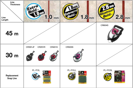 Doskonały przyrząd do wyznaczania linii, japońskiej firmy Tajima. Wysokiej jakości pleciona żyłka zatrzaskowa tworzy linie Extreme Bold o grubości 0,07 cala (1,8 mm).