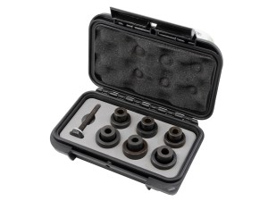 Zestaw profesjonalnych wykrojników do plastiku firmy Montero. Wykrojniki o różnych rozmiarach w zależności od wycięcia wymaganego otworu. Przeznaczone do wycinania w takich materiałach jak akryl, tworzywa sztuczne, poliwęglany, polipropylen, PCV itp. Szczególnie polecane do zderzaków samochodowych. Wykrojniki wykonane z wysokiej jakości materiałów o dużej precyzji wycinania. Dostarczane w kasecie z tworzywa.