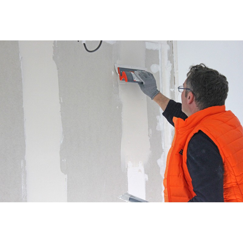 - szybsze wygładzanie dużych powierzchni – szerokie, elastyczne ostrza pozwalają równomiernie rozprowadzać masę szpachlową, znacznie skracając czas pracy na ścianach i sufitach