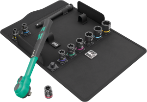 Wysokiej jakości profesjonalny 11-częściowy zestaw kluczy nasadowych calowych z grzechotką firmy Wera. Zestaw składa się z grzechotki z 3/8" Zyklop Comfort z przełącznikiem zmiany kierunku pracy, 9 kluczy nasadowych Zyklop Impaktor, 1 przedłużka Zyklop. Grzechotka z komfortową osłoną z tworzywa sztucznego zapewnia wygodę podczas użytkowania. Dzięki smukłej konstrukcji, narzędzie doskonale sprawdza się w bardzo wąskich przestrzeniach montażowych, zapewniając swobodę ruchu i precyzję pracy. Grzechotka drobnozębna z 80 zębami oraz niewielkim kątem powrotu zapadki wynoszącym zaledwie 4,5°, umożliwia efektywne i płynne wykonywanie zadań. Przełącznik zmiany kierunku pracy oraz funkcja niezawodnego blokowania kluczy nasadowych za pomocą przycisku dodatkowo zwiększają wygodę i bezpieczeństwo użytkowania narzędzia. Osłona dwukomponentowa wykonana z tworzywa sztucznego zapewniająca komfortowe użytkowanie grzechotki Zyklop Comfort nawet w niskich temperaturach. Dodatkowo osłona chroni powierzchnie przed uszkodzeniem, co zwiększa trwałość narzędzia i zapewnia jego długotrwałe użytkowanie. Przeznaczona do kluczy nasadowych czworokątnych 3/8" oraz adapterów z zabierakiem czworokątnym 3/8" i zatrzaskiem kulkowym. Technologia Zyklop Impaktor pozwala na uzyskanie ponadprzeciętnej żywotności kluczy nasadowych nawet w najbardziej wymagających warunkach pracy. Dzięki systemowi wyszukiwania narzędzi "Take it easy" (kodowanie kolorami według rozmiaru), można szybko odnaleźć potrzebny rozmiar, co zwiększa wydajność i oszczędza czas. Ponadto przedłużka Zyklop może być używana do pracy z trudno dostępnymi nakrętkami i śrubami, zapewniając wszechstronność i elastyczność w różnych zastosowaniach. Zestaw kluczy nasadowych calowych z grzechotką 3/8" Zyklop Comfort w bardzo wytrzymałym kompaktowym i trwałym tekstylnym etui z dodatkową strefą z włókniny na odwrocie. Dzięki dołączonemu samoprzylepnemu paskowi z rzepem, etui może być łatwo przyklejane do różnych elementów systemu do transportu narzędzi Wera 2go, ścianek, półek czy wózków warsztatowych. Ta praktyczna funkcja zapewnia wygodę w organizacji narzędzi oraz łatwy dostęp do nich podczas pracy. Zestaw przydatny do wszelkiego rodzaju prac montażowych i serwisowych w warsztatach oraz w przemyśle. Idealnie nadaje się dla profesjonalistów oraz hobbystów, którzy cenią sobie wysoką jakość, wytrzymałość, oraz wszechstronność w codziennej pracy.