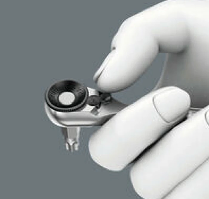 W zestawie narzędzi znajdziesz kutą matrycowo, stalową grzechotkę Zyklop Mini 1/4" z drobnozębnym mechanizmem zapadkowym (60 zębów). Minimalny kąt powrotu 6° pozwala na komfortową pracę nawet w najciaśniejszych zakamarkach, a ergonomiczna główka i wygodny przełącznik kierunku (prawo/lewo) sprawiają, że obsługa jest szybka, płynna i bez wysiłku.