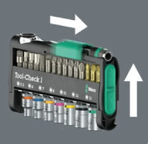 - kompaktowy rozmiar – całość zamknięta w poręcznej kasecie Tool-Check, którą możesz zabrać do torby, plecaka albo schować w szufladzie. Oszczędzasz miejsce i zawsze masz komplet pod ręką