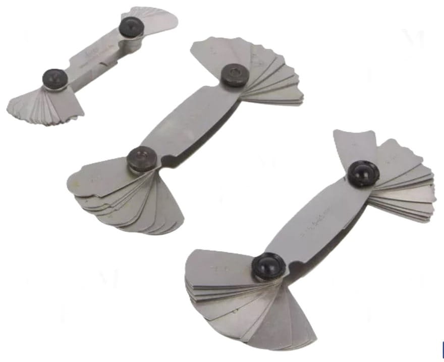 Trzy zestawy liści pomiarowych, wykonane z polerowanej stali, umożliwiają: