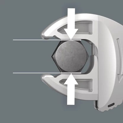 Seria kluczy Joker 6006 łączy w sobie to, co najlepsze: pewny chwyt, automatyczne dopasowanie, stabilność pod obciążeniem oraz funkcję grzechotki mechanicznej, która pozwala dokręcać szybko, płynnie i bez konieczności odrywania narzędzia od elementu. Dzięki specjalnym pryzmom w szczękach, kąt pracy ograniczono do zaledwie 30°, co czyni te klucze idealnymi do pracy w ciasnych przestrzeniach, między przewodami, profilami czy elementami konstrukcyjnymi.