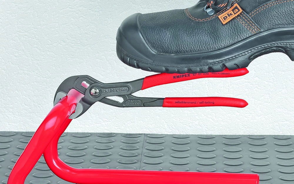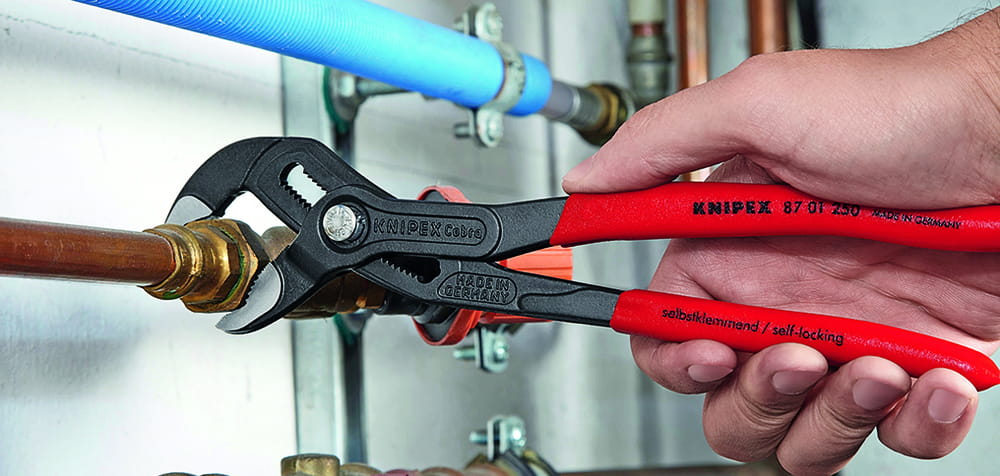 Zestaw szczypiec do rur Cobra najnowszej generacji. Ustawianie rozstawu Cobry możliwe jest przed chwytem lub bezpośrednio na przedmiocie za pomocą przycisku. Precyzyjna regulacja zapewnia optymalne dopasowanie do przedmiotów o różnej wielkości i wygodną dla dłoni pozycję rękojeści. Zakres pracy jest bardzo duży i uzależniony od wielkości szczypiec. Samozaciskają się na rurach i nakrętkach, nie zsuwają się z chwytanego przedmiotu, wymagają użycia niewielkiej siły. Powierzchnie chwytające szczypiec do rur ze specjalnie hartowanymi zębami o twardości ok. 61 HRc, zapewniają niezawodność i trwałość dzięki wyjątkowej odporności na zużycie. Złącze wsuwkowe o bardzo dużej wytrzymałości i stabilności z niezawodną blokadą sworznia, zapobiega przypadkowemu przestawieniu. Kształt rękojeści zabezpiecza użytkownika przed przyciśnięciem palców. Szczypce do rur wykonane ze stali elektrycznej chromowo-wanadowej, kutej i hartowanej wielostopniowo olejowo. Zestaw szczypiec dostarczany w opakowaniu blistrowym z przezroczystym wieczkiem z zawieszką.