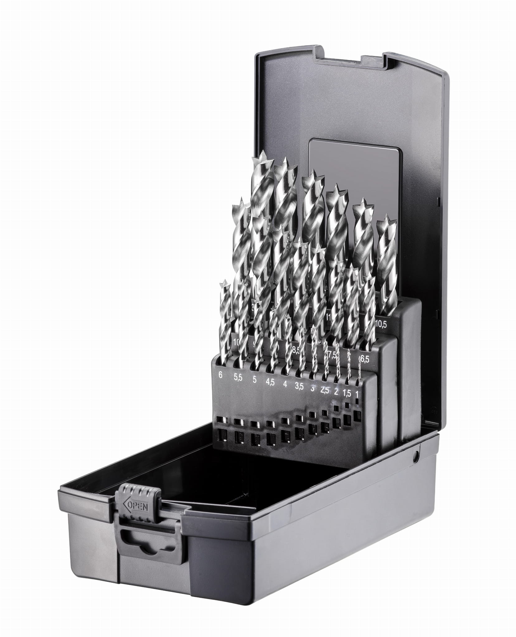 - zestaw zawiera 25 wierteł o różnych średnicach, co pozwala dopasować narzędzie do różnych zadań. Dodatkowo, plastikowe pudełko ułatwia przechowywanie i transport zestawu