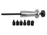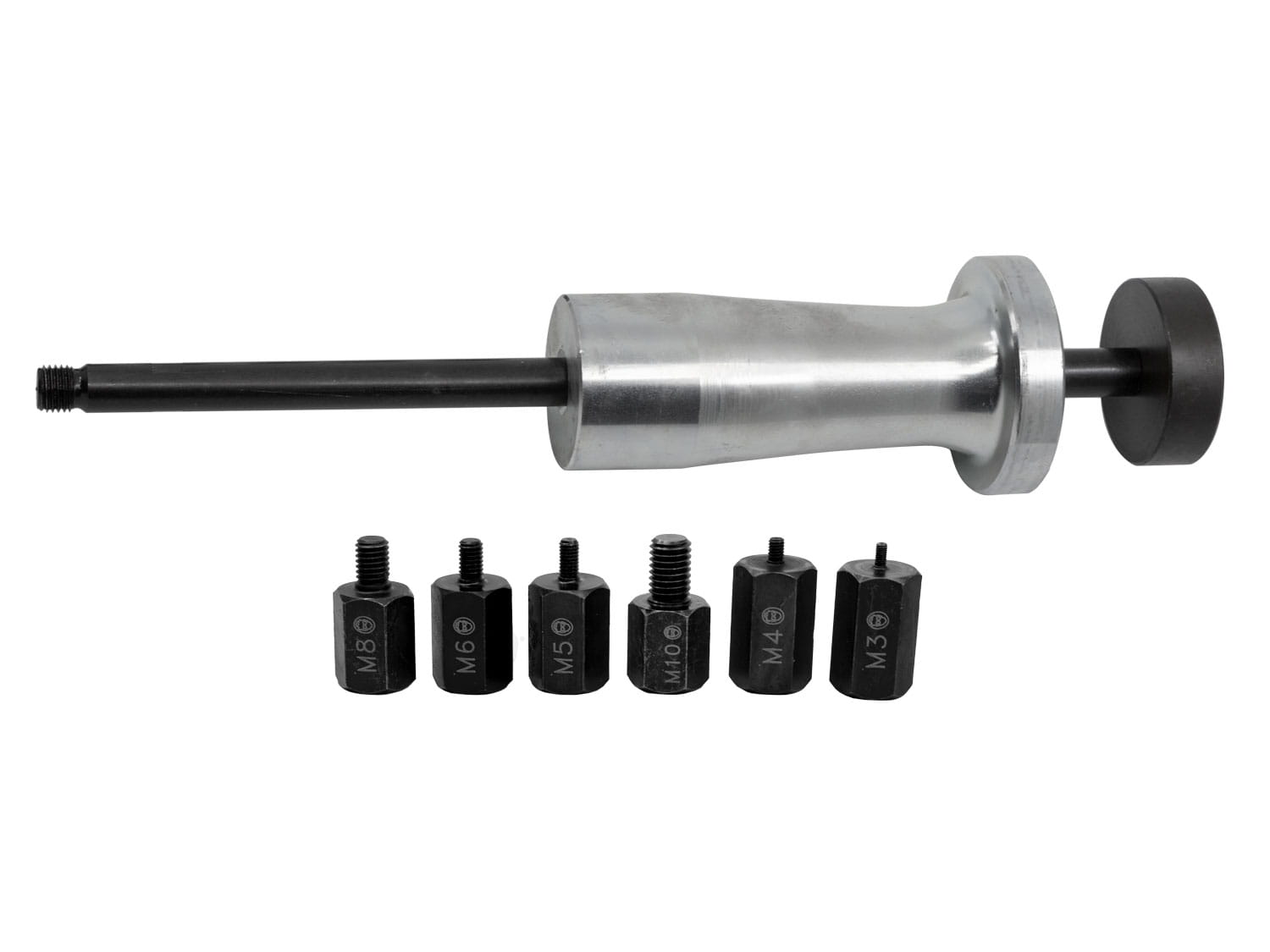 Zestaw z młotkiem bezwładnościowym to profesjonalne narzędzie, które znacząco ułatwia pracę monterów i techników, umożliwiając efektywne wprowadzanie elementów z gwintami, takich jak śruby, wkręty czy kołki, do otworów gwintowanych. Młotek bezwładnościowy minimalizuje siłę odrzutu, przekłada się na większą precyzję i wygodę pracy, szczególnie w trudnych warunkach montażowych. Zestaw z młotkiem bezwładnościowym doskonale sprawdza się przy wybijaniu elementów z gwintami o rozmiarach M3, M4, M5, M6, M8 i M10, co czyni je wyjątkowo wszechstronnym i funkcjonalnym w różnorodnych zadaniach związanych z montażem, naprawami oraz pracami serwisowymi.