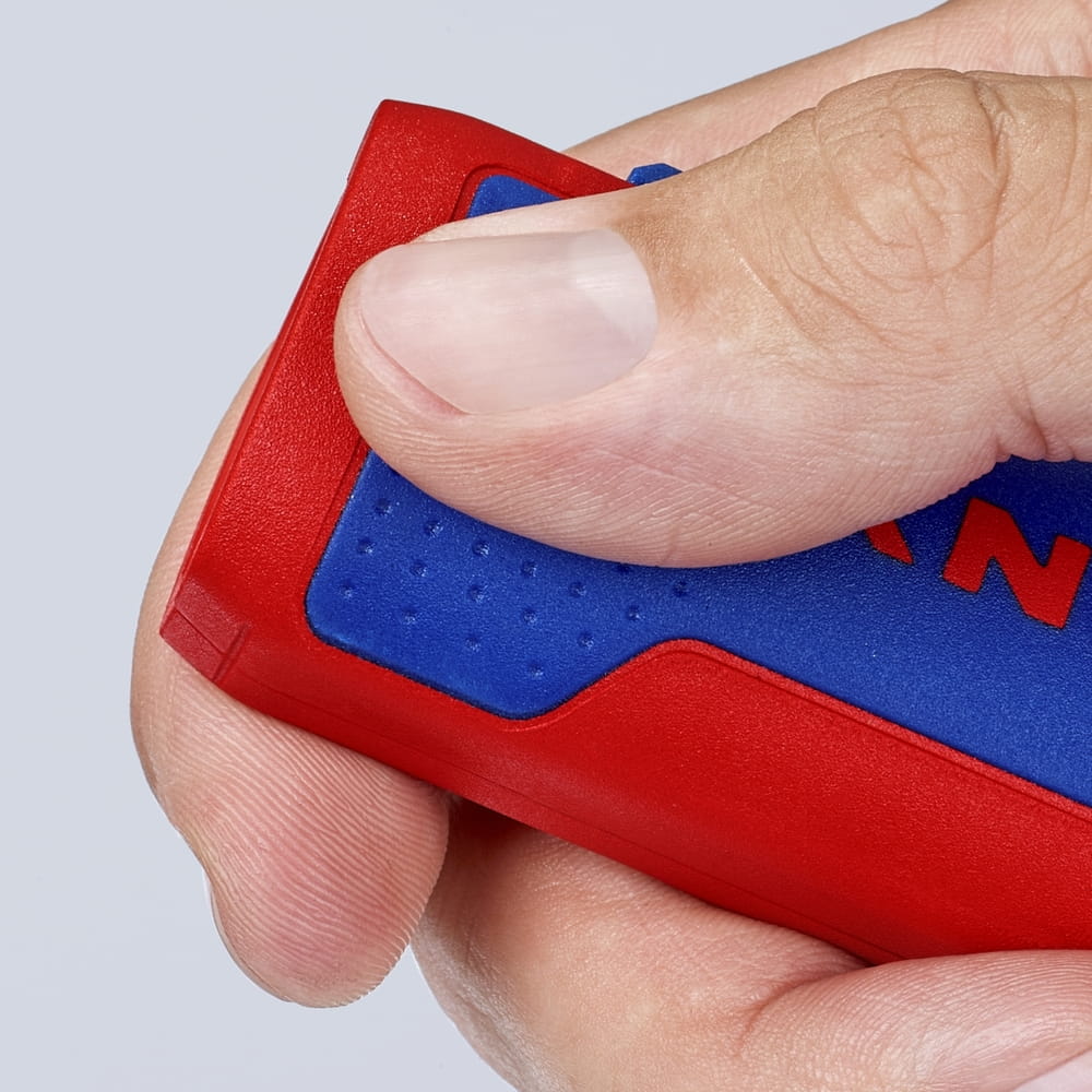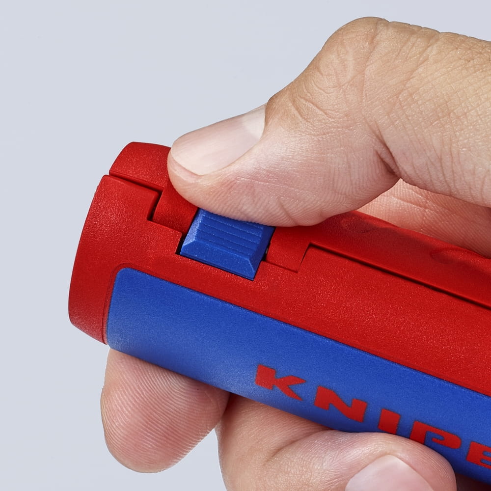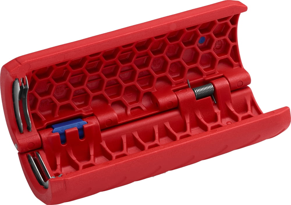 Przyrząd nie uszkadza przewodów dzięki specjalnie zaprojektowanemu układowi noży z boczną prowadnicą.