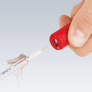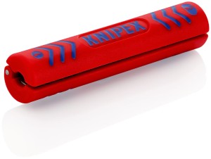 Profesjonalny przyrząd (ściągacz) firmy Knipex do usuwania izolacji z wszystkich ogólnie stosowanych kabli koncentrycznych o średnicy Ø 4,8 - 7,5 mm (np. kabli antenowych), również z okrągłych kabli elektrycznych PCW 3 x 0,75 mm². Z podziałką długości od 5,0 do 20,0 mm.Dwuczęściowy korpus z wysuwanym ostrzem. Ze sprężyną rozwierającą oraz blokadą otwarcia. Korpus wykonany tworzywo sztuczne wzmacniane włóknem szklanym. Przydatny do prac przy instalacjach telekomunikacyjnych np. montażu anten TV, elektrycznych, serwisowych itp.