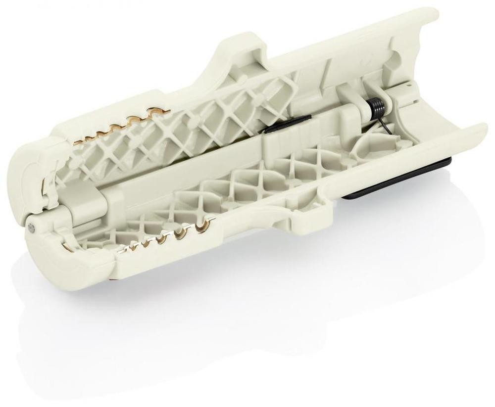 Profesjonalny przyrząd (ściągacz) firmy Knipex do usuwania zewnętrznej izolacji kabli teleinformatycznych UTP, STP, CAT5, CAT6, CAT7 o średnicy od 4,5 do 10,0 mm. Ściągacz przeznaczony do usuwania izolacji z przewodów o przekroju 0,2 / 0,3 / 0,8 / 1,5 / 2,5 / 4 mm². Dwuczęściowy korpus z wysuwanym ostrzem. Ze sprężyną rozwierającą oraz blokadą otwarcia. Zatrzask mocujący, pozwala na bezpieczne przechowywanie. Korpus ściągacz wykonany z tworzywa sztucznego wzmacnianego włóknem szklanym. Noże wykonane ze specjalnej stali narzędziowej, hartowanej olejowo, z powłoką TiN. Ściągacz izolacji przydatny do prac montażowych w instalacjach telekomunikacyjnych, prac serwisowych itp.