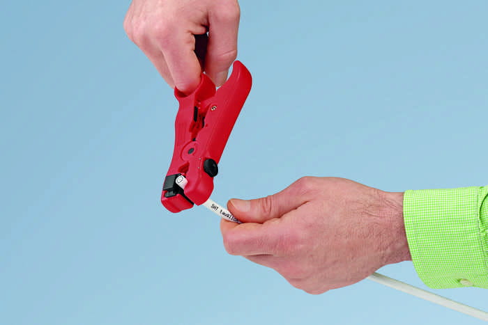 - profesjonalny przyrząd (ściągacz) firmy Knipex do ściągania izolacji z przewodów telefonicznych i teleinformatycznych