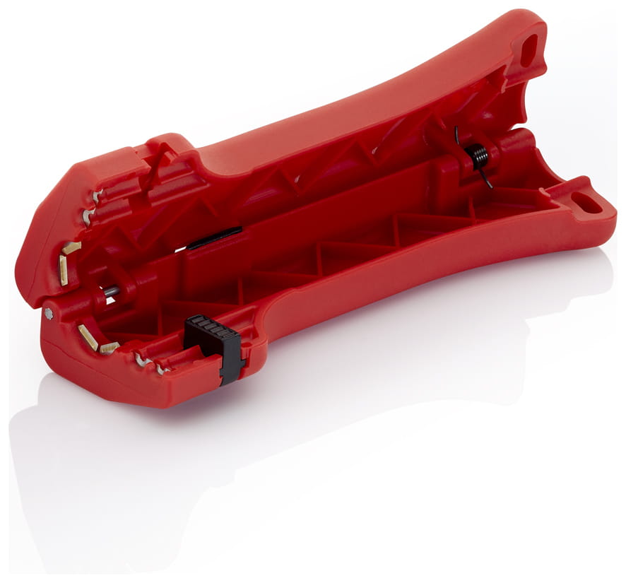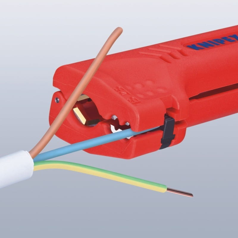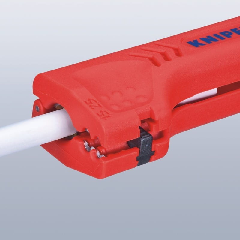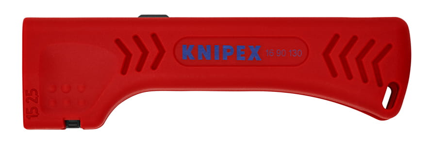 - profesjonalny przyrząd (ściągacz) firmy Knipex do usuwania izolacji zewnętrznej z większości popularnych przewodów okrągłych Ø 8,0 - 13,0 mm (np. 3 x 1,5 mm2 lub 5 x 2,5 mm2)