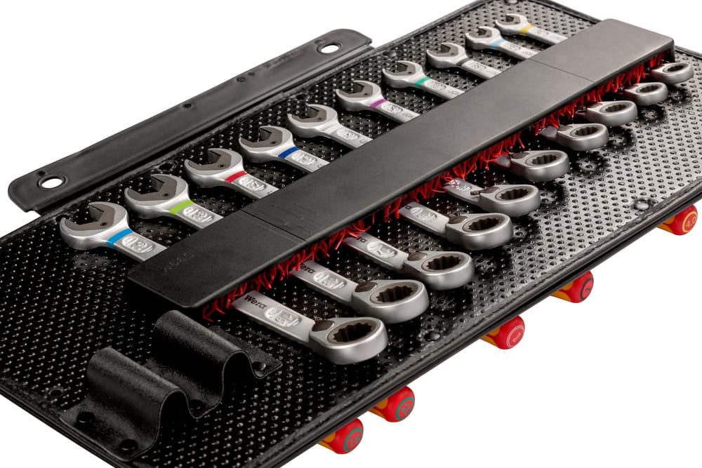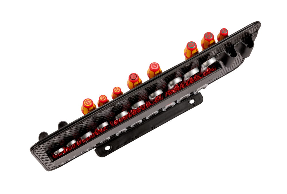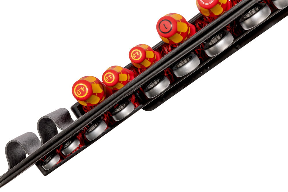 Wyposażona z obu stron w uchwyt CP-7 ścianka do walizki Parat Classic 489.610-171. Łatwa w montażu ścianka pozwala na przechowywanie narzędzi bez rozsypywania. Narzędzia są poukładane, a w walizce panuje ład i porządek. Uchwyt CP-7 stabilnie przytrzymuje takie narzędzia jak wkrętaki, klucze, szczypce i inne tego typu narzędzia ręczne. Z obydwu stron ścianki do walizki znajdują się również do zagospodarowania tradycyjne uchwyty mocowane do ścianki nitami.