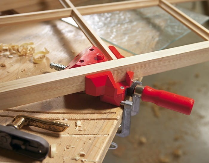 - profesjonalny zacisk / imadło kątowe samonastawne firmy Bessey do montażu elementów pod kątem prostym