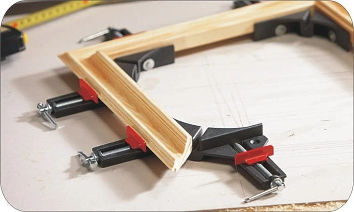 - lekki ścisk (zacisk) kątowy firmy Bessey do montażu elementów takich jak listewki, ramki itp. pod kątem prostym