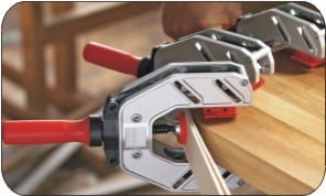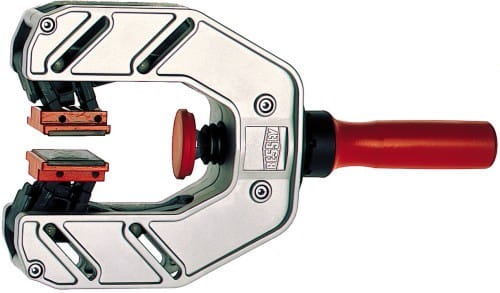 - profesjonalny ścisk (zacisk) stolarski doczołowy firmy Bessey, do mocowania z czoła np. listewek, oklein, taśm itp.