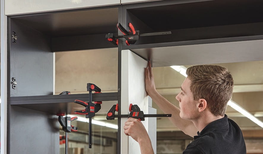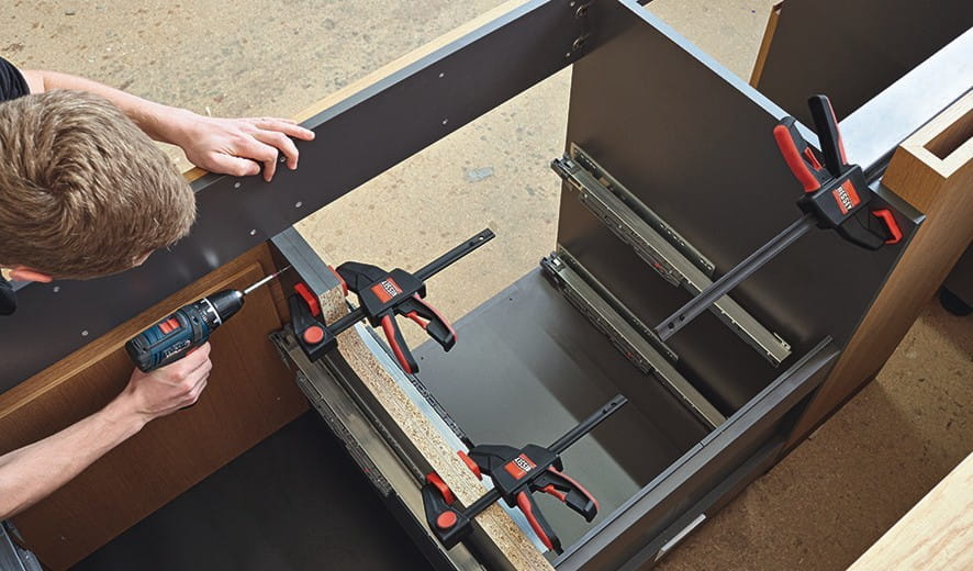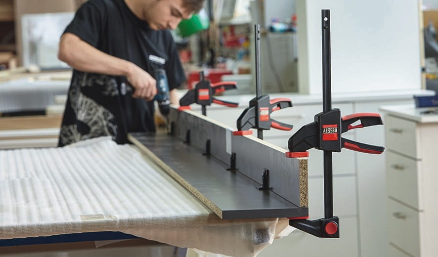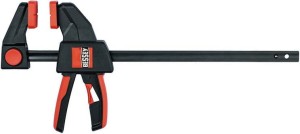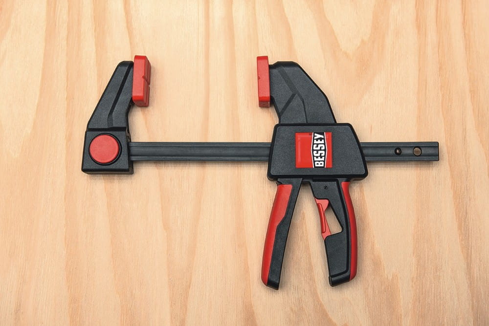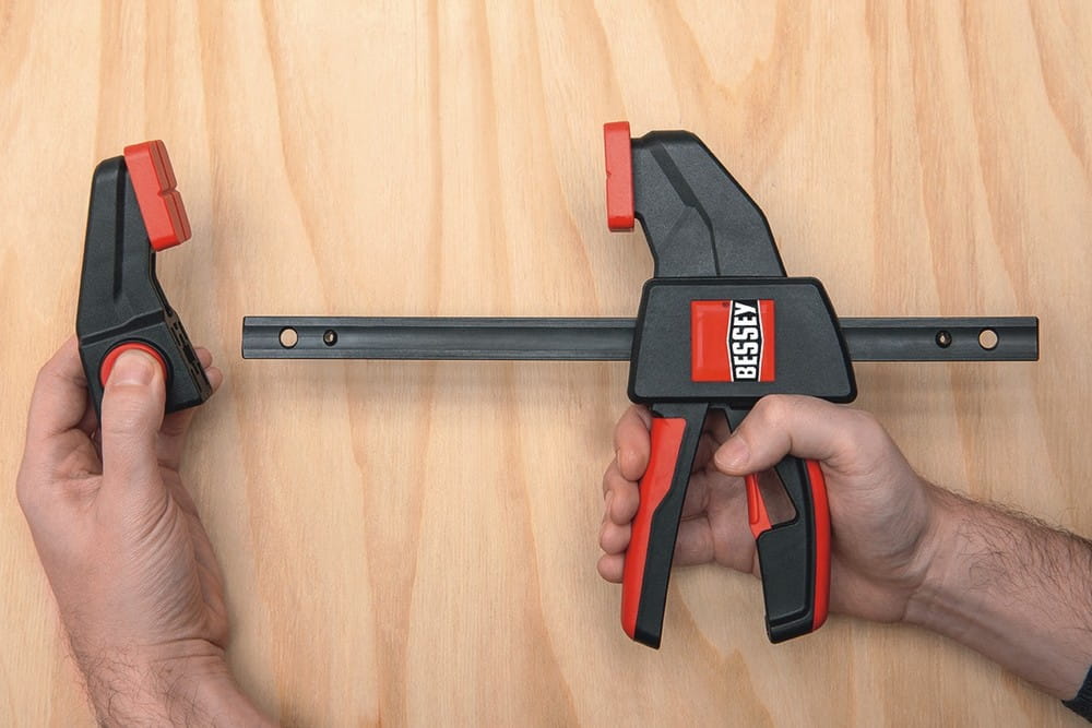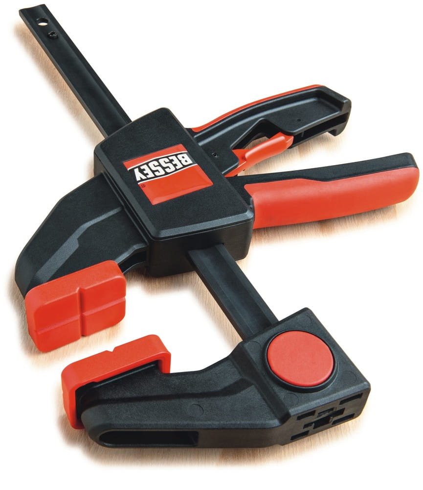 Profesjonalny zacisk szybkomocujący jednoręczny firmy Bessey, do wszelkiego rodzaju prac stolarskich i montażowych. Siła mocowania do 2 700 N. W zaciskach szybkomocujących EZM, EZL, EZXL funkcja rozpierania ustawiana jest bez użycia innych narzędzi dzięki prostemu mechanizmowi zwalniającemu z przyciskiem na ramieniu stałym. Cztery rozmiary o zakresie mocowania od 110 do 900 mm oraz sile mocowania od 200 do 2 700 N. Pryzma krzyżowa zintegrowana w nakładkach ochronnych z tworzywa sztucznego pewnie przytrzymuje okrągłe, ostre lub wielokątne elementy. Dzięki możliwości zmiany funkcji ramienia stałego z mocowania na rozpieranie – w zaciskach szybkomocujących EZM, EZL i EZXL bez użycia innych narzędzi dzięki prostemu mechanizmowi zwalniającemu z przyciskiem. Ergonomiczna rękojeść dwukomponentowa z tworzywa sztucznego z mechanizmem pompującym i zintegrowaną dźwignią zwalniającą za szyną. Pryzma krzyżowa zintegrowana w nakładkach ochronnych z tworzywa sztucznego pewnie przytrzymuje okrągłe, ostre lub wielokątne elementy. Bardzo trwały dzięki wysokiej jakości materiałów takich jak poliamid wzmacniany włóknem szklanym, z którego wykonano ramię stałe i ruchome, oraz ulepszana cieplnie i czerniona stal, z której wykonano profilowaną szynę dzięki obudowie z tworzywa sztucznego, która chroni mechanizm napędowy ramienia ruchomego przed pyłem i wiórami. Cały asortyment zapewnia ergonomiczną i bezpieczną obsługę dzięki przemyślanym rozwiązaniom technicznym. Obsługa jedną ręką bez użycia siły. W opakowaniu z zawieszką.