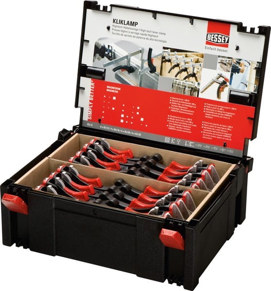 - zestaw 16 lekkich ścisków (zacisków) dźwigniowych Bessey, do wszelkiego rodzaju prostych prac stolarskich, modelarskich, montażowych oraz zastosowań domowych