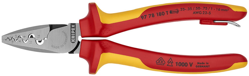 Szczypce do zagniatania tulejek kablowych z uchwytem do linki zabezpieczającej Knipex 97 78 180 T