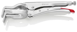 Profesjonalne szczypce zaciskowe (mors) firmy Knipex ze szczękami do chwytania rur i innych elementów o okrągłym przekroju. Korpus szczypiec wykonany ze stali walcowanej o dużej wytrzymałości, szczęk ze stali elektrycznej chromowo - wanadowej, kutej hartowanej olejowo. Szczęki ze staliwa odpornego na wysokie temperatury, podczas spawania pewnie przytrzymują elementy okrągłe lub rury leżące centralnie obok siebie. Ze śrubą regulacyjną i dźwignią zwalniającą do obsługi jedną ręką. Do prac przy dużych obciążeniach. Szczypce zaciskowe to jedno z najbardziej funkcjonalnych narzędzi, które podczas drobnych prac są w stanie zastąpić ścisk lub imadło. Cynkowane na wysoki połysk. Przydatne podczas wielu prac montażowych, serwisowych i spawalniczych.