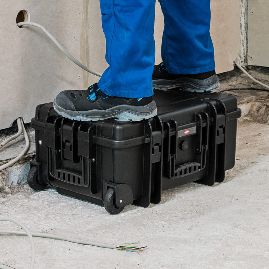Wysokiej klasy profesjonalna walizka wodoodporna firmy Knipex z zintegrowanymi kółkami i uchwytem teleskopowym. Walizka narzędziowa z odpornego na uderzenia polipropylenu przystosowana do przewozu samolotem. Do eksploatacji nawet w najtrudniejszych warunkach: pyłoszczelność, wodoodporność i odporność na działanie temperatur. Zawór automatycznego wyrównania ciśnienia. Odporna na temperatury w zakresie od - 30°C do + 80°C. Walizka narzędziowa posiada komorę na dokumenty; tablice narzędziowe z odpornego na zabrudzenia tworzywa sztucznego o podwójnych ściankach, kieszonki narzędziowe i uchwyty pętelkowe oraz zamykany pojemnik dolny z systemem przegródek aluminiowych do indywidualnej aranżacji przestrzeni pojemnika. Łącznie 147 opcjonalnych wkładek. Wymiary zewnętrzne (S x W x G): 609 x 263 x 428 mm; wymiary wewnętrzne (S x W x G):540 x 229 x 364 mm. Walizka narzędziowa Knipex posiada zamek przystosowany do zamknięcia na kłódkę. Ergonomiczna rękojeść dwukomponentowa. Maksymalna ładowność: 35 kg. Walizka narzędziowa Knipex jest przydatna do prac warsztatowych i serwisowych.